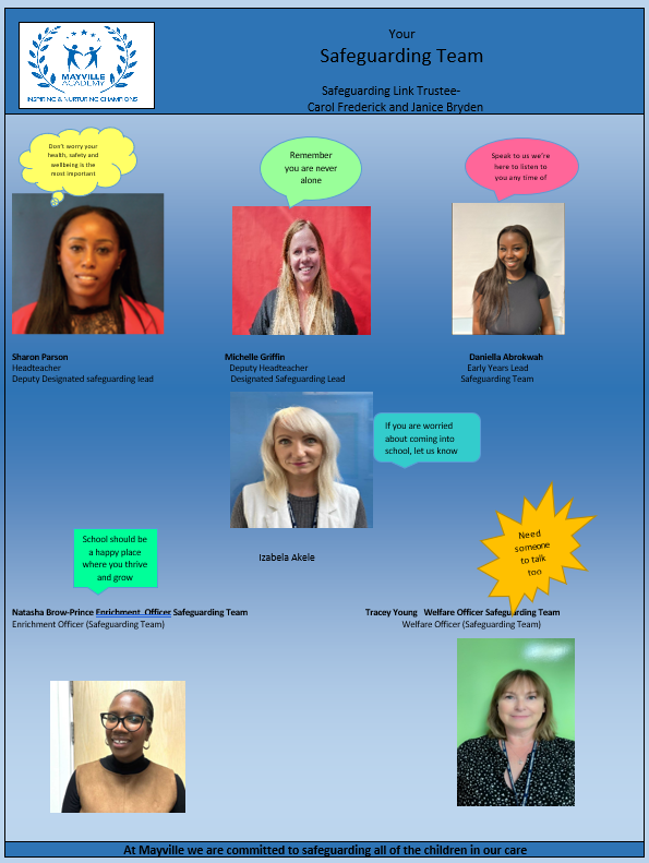 All Mayville Primary School staff receive regular safeguarding training, and we continue to ensure that our staff, trustees, parents/carers and students work together to keep children safe.